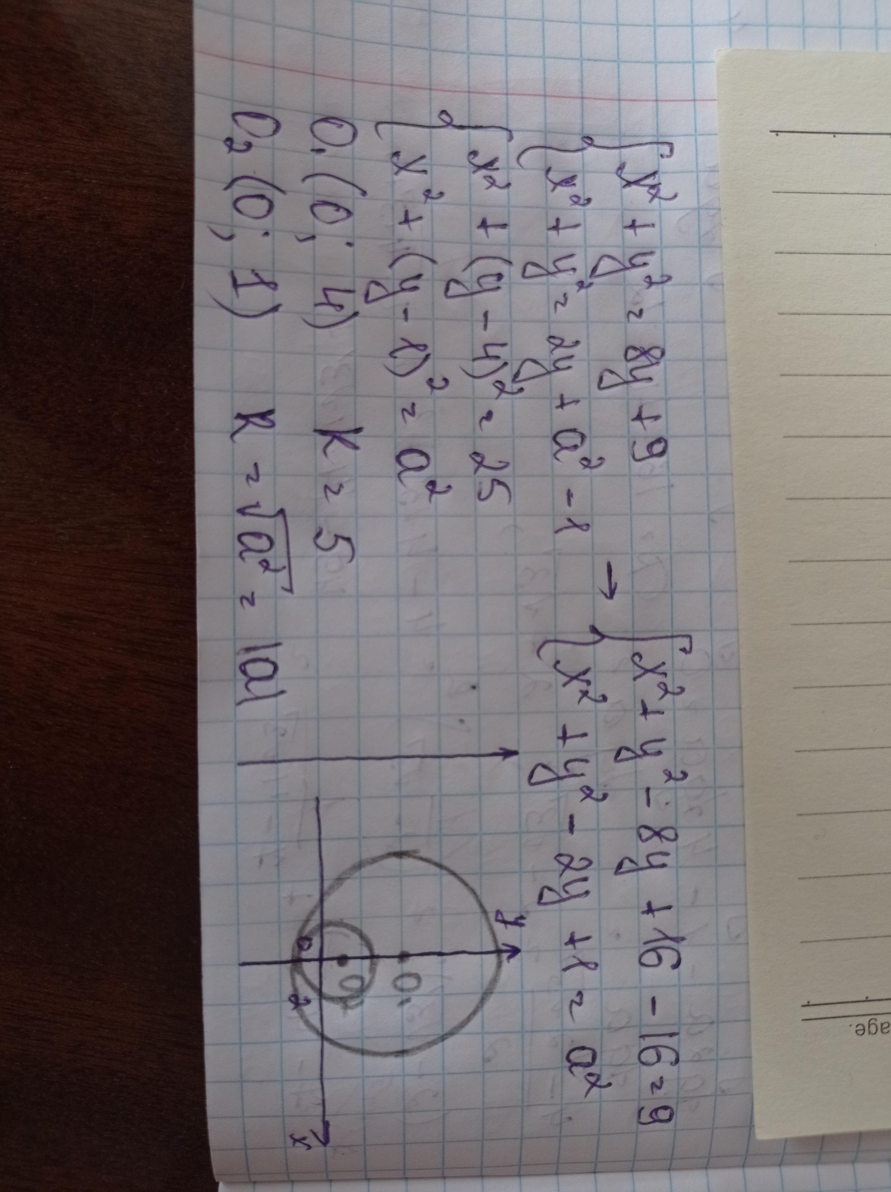 рисунок кривой, но всё же по нему можно определить каким должен быть радиус второй окружности, чтобы они прикасались в одном месте. Это и будет значить, что у системы есть одно решение.
