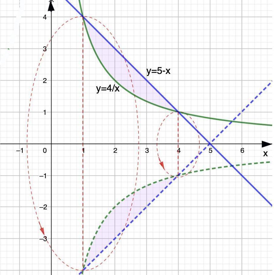 У нас а = 1; b = 4; y₂ = 5 - x; y₁ = 4/x.