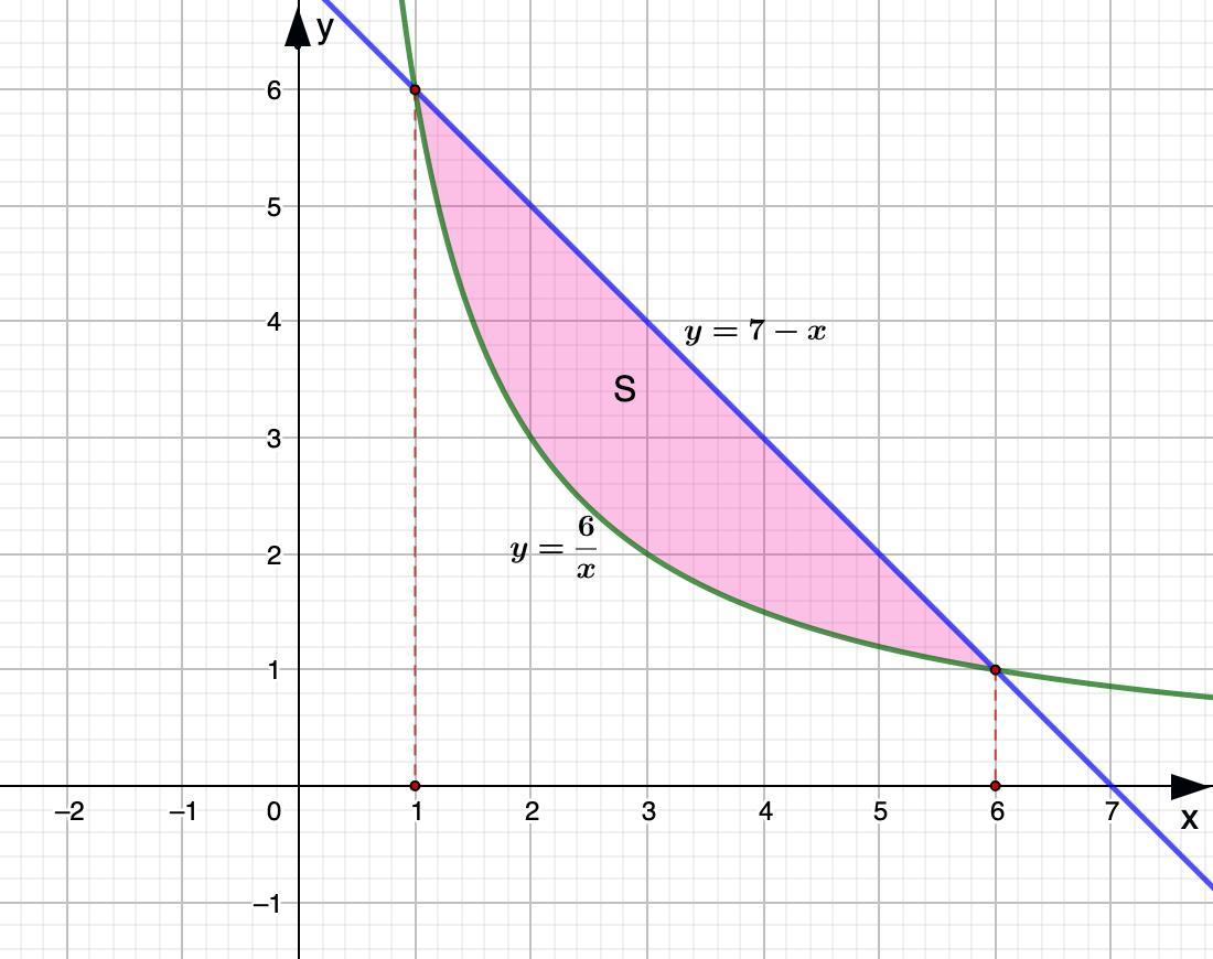 У нас а = 1; b = 6; f₁(x) = 6/x; f₂(x) = 7 - x.