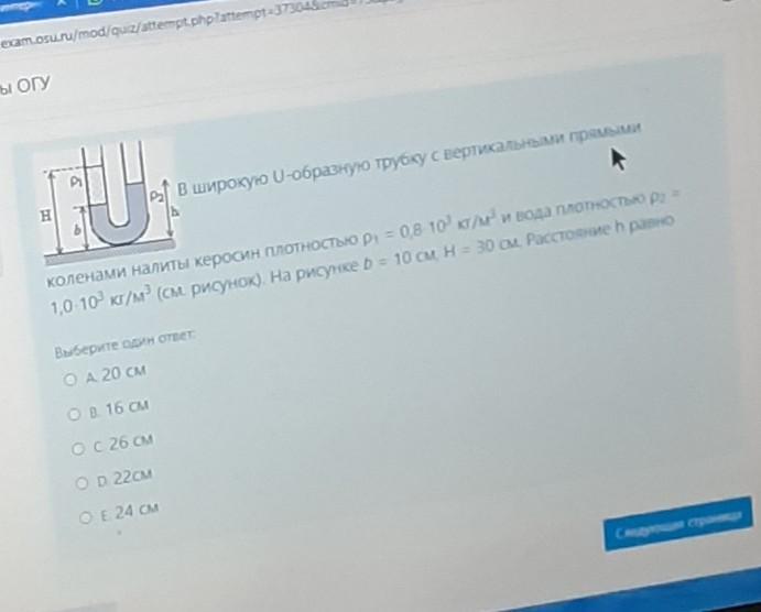 Теперь условие можно упростить: какой высоты столб воды создает такое же давление, как керосин высотой 20 см?