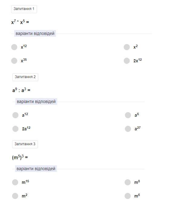х⁷×х⁵=х⁷±⁵=х¹²