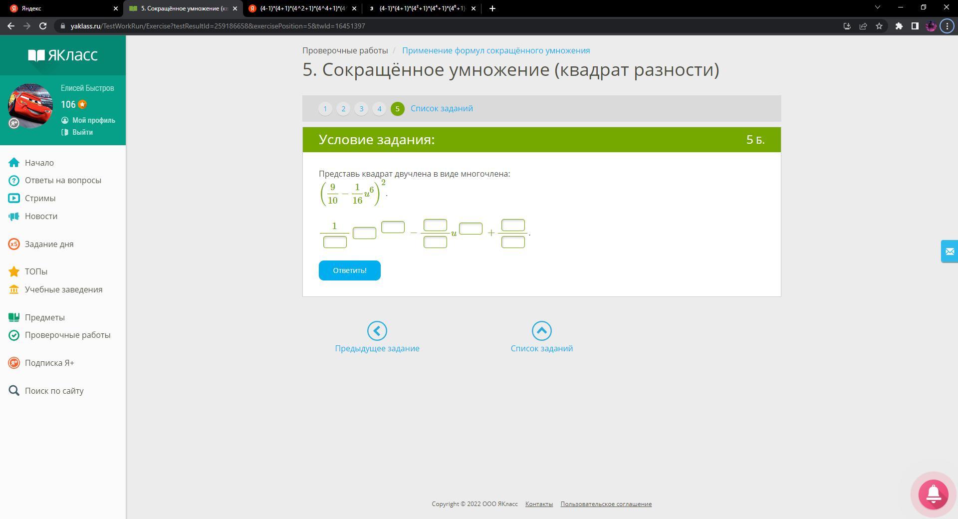 Представь квадрат двучлена в виде многочлена