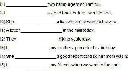 пж до четверга 10:00 там обрізане слово happy вставити слова ate came did drank gave got made met ran read saw swam took went rode