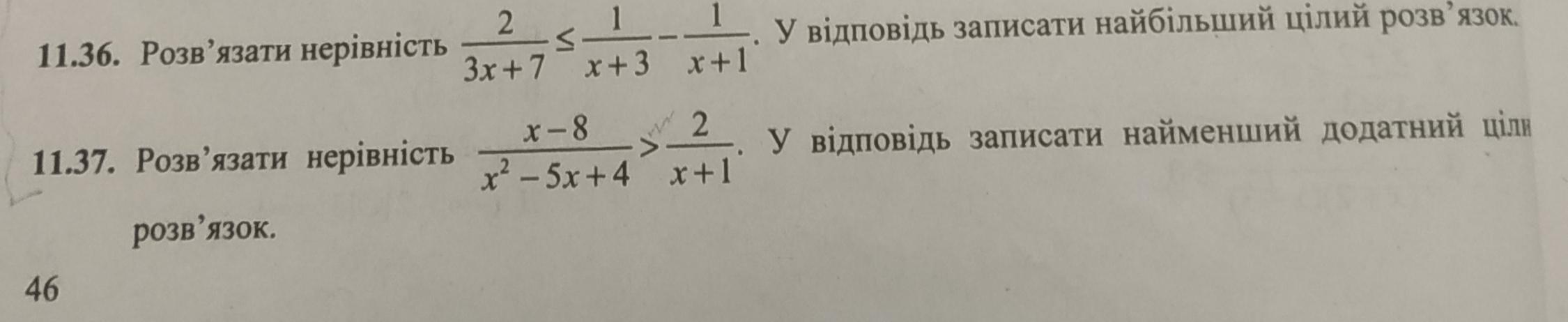 4. Розв'язати нерівність 2/3x + 7 <= 1/x + 3 - 1/x + 1. У вiдповiдь записати найбільший цiлий розв'язок.