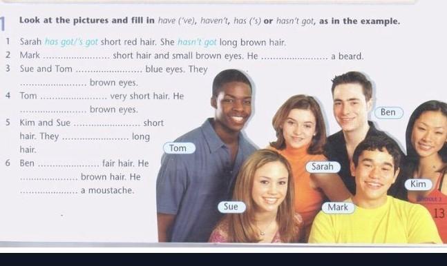 2. Mark has got short hair and small brown eyes. He hasn't got a beard.