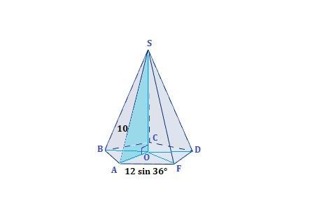 и стороной 12sin36*. Боковое ребро пирамиды равно 10. Найдите ее высоту.