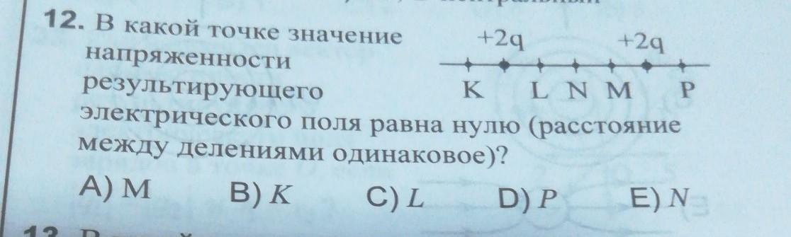 Два точечных заряда положительные, на прямой, лежащей слева от точки К или справа от точки L,(первая сторона), а с другой стороны точки М и Р не могут быть нулевыми точками, так как в этих областях созданы отдельные поля, не могут обнулять друг друга.