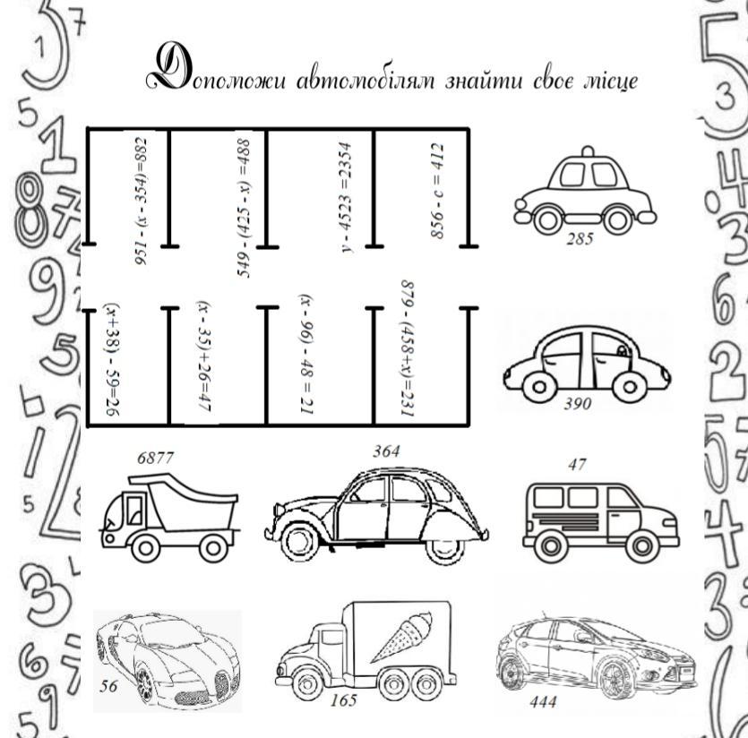 я делала сначала уравнения снизу. некоторые машины имеют неправильные номера, я в этом уверена, ведь уже проверяла эти уравнения несколько раз