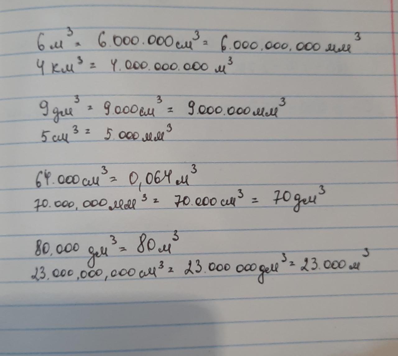 6 м3 =? см3 = ?мм3 4 км3 = ?м3