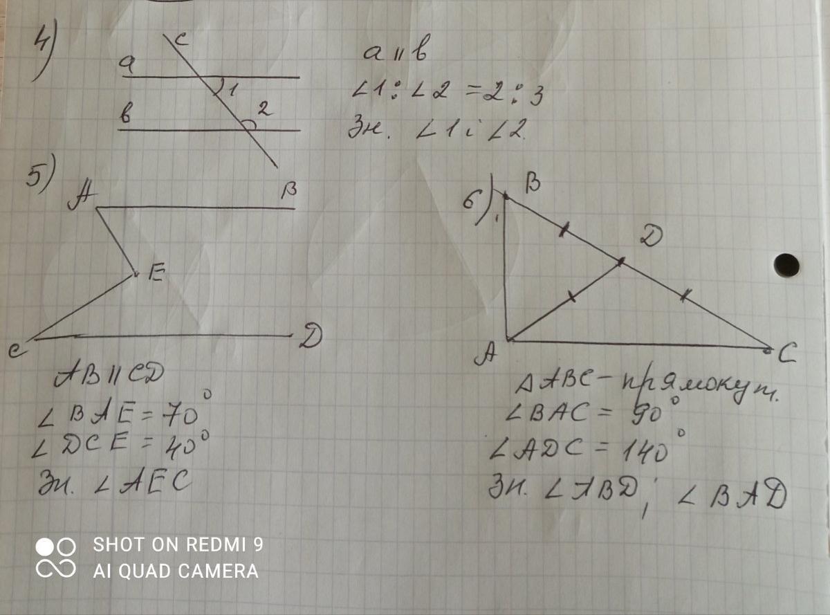 5) АВ║СD, ∠BAE=70°, ∠DCE=40°. Найти: ∠АЕС.