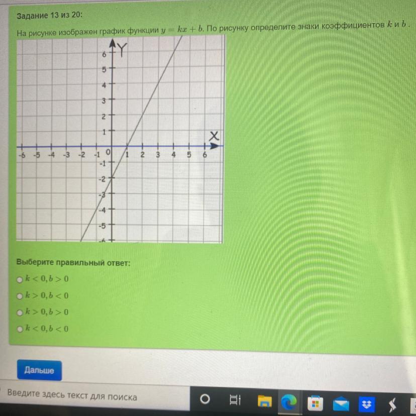 если b меньше 0, то в выражении 0=k+b, k должно быть больше 0