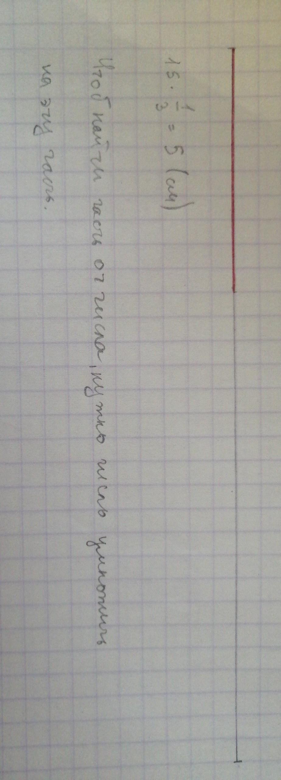 Начерти отрезок длиной 15 см Выдели красным цветом 1/3 часть отрезка Вычисли Сколько сантиметров составляет эта часть отрезка С фото
