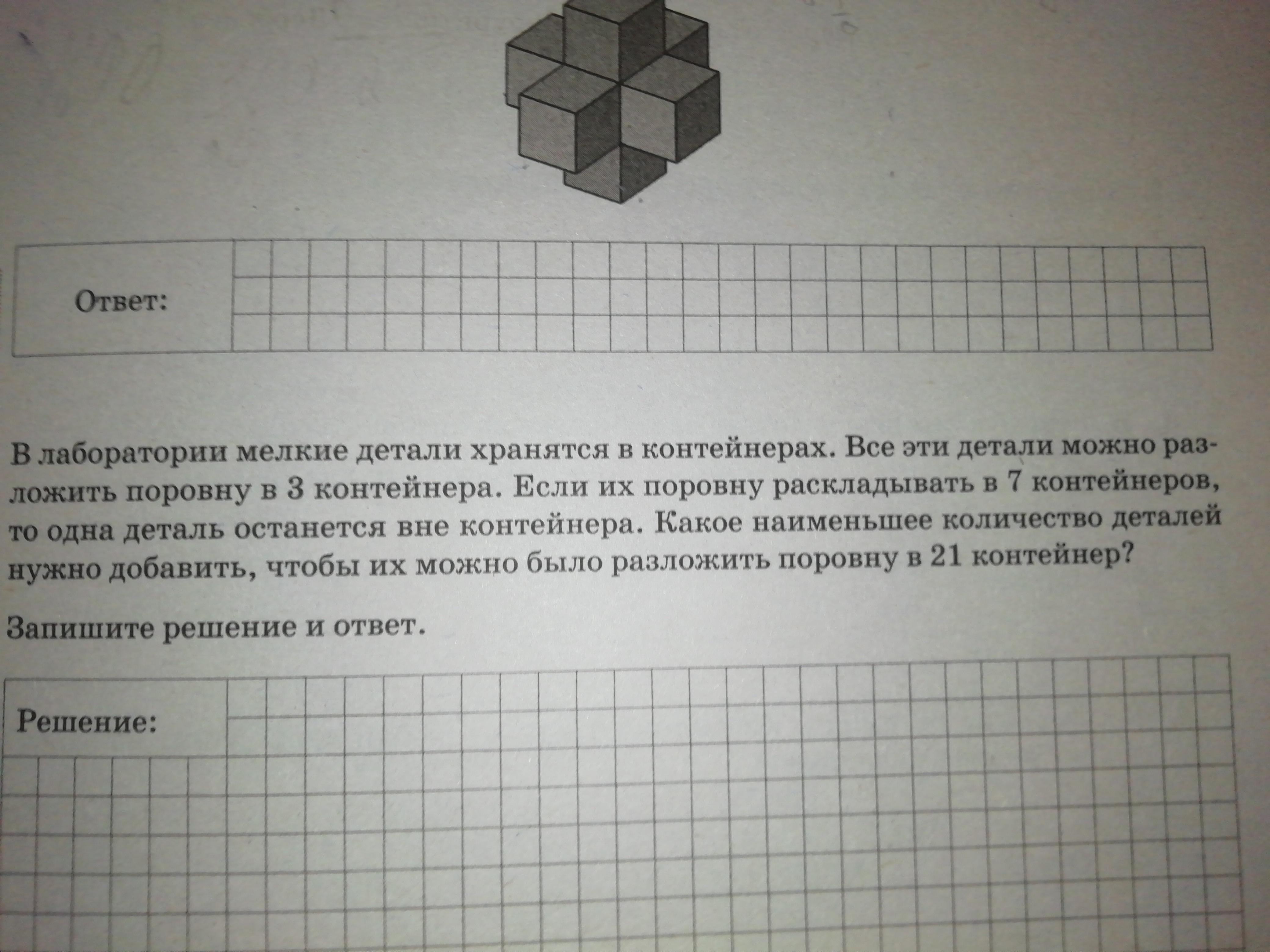 Однако, нужно найти число детатей, чтобы их разложить в 21 контейнер.