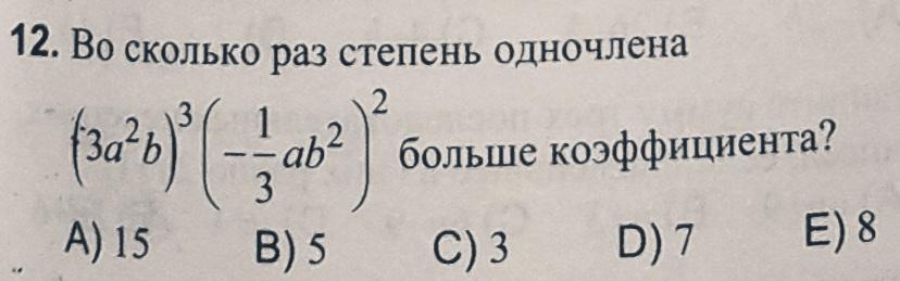 Коэффициент 3, степень одночлена 15. 15/3=5..