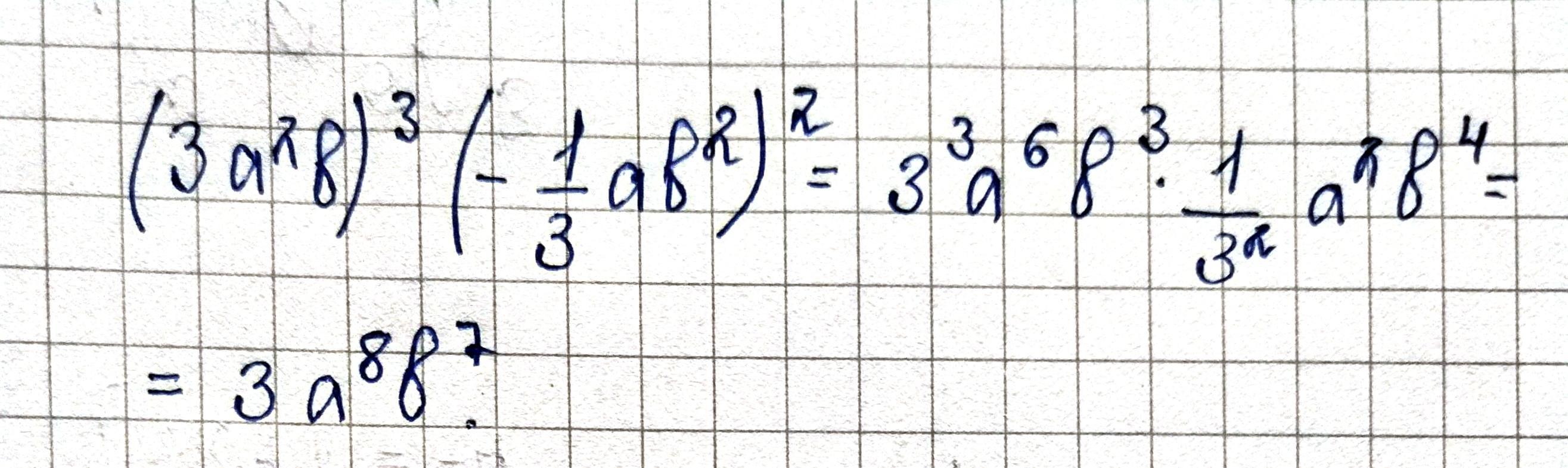 (3а²b)³•(-1/3ab²)² = 27•a⁶•b³•1/9•a²•b⁴ =