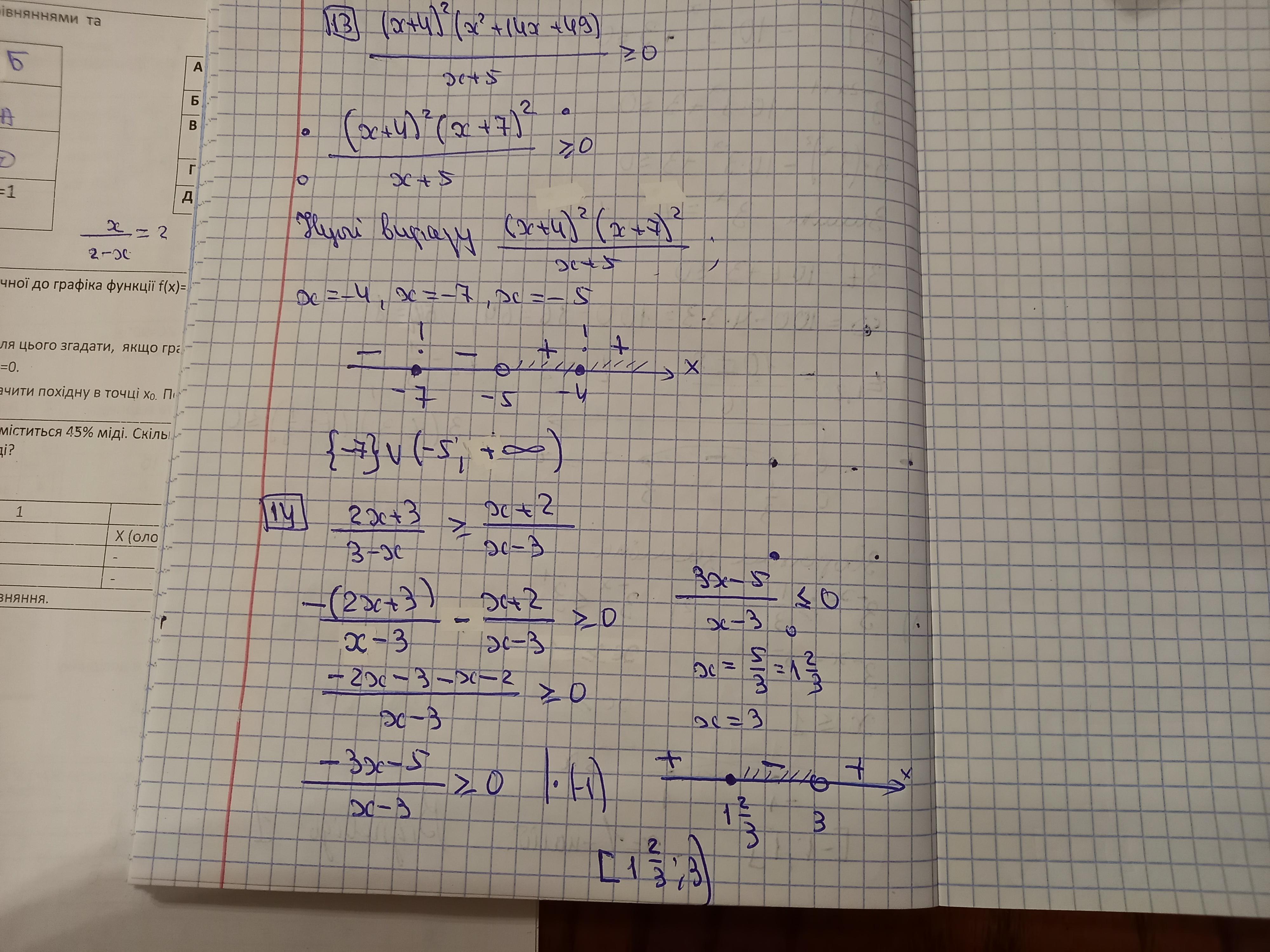 13) [( x+ 4 )²( x² + 14x + 49 )]/( x + 5 ) ≥ 0 ;
