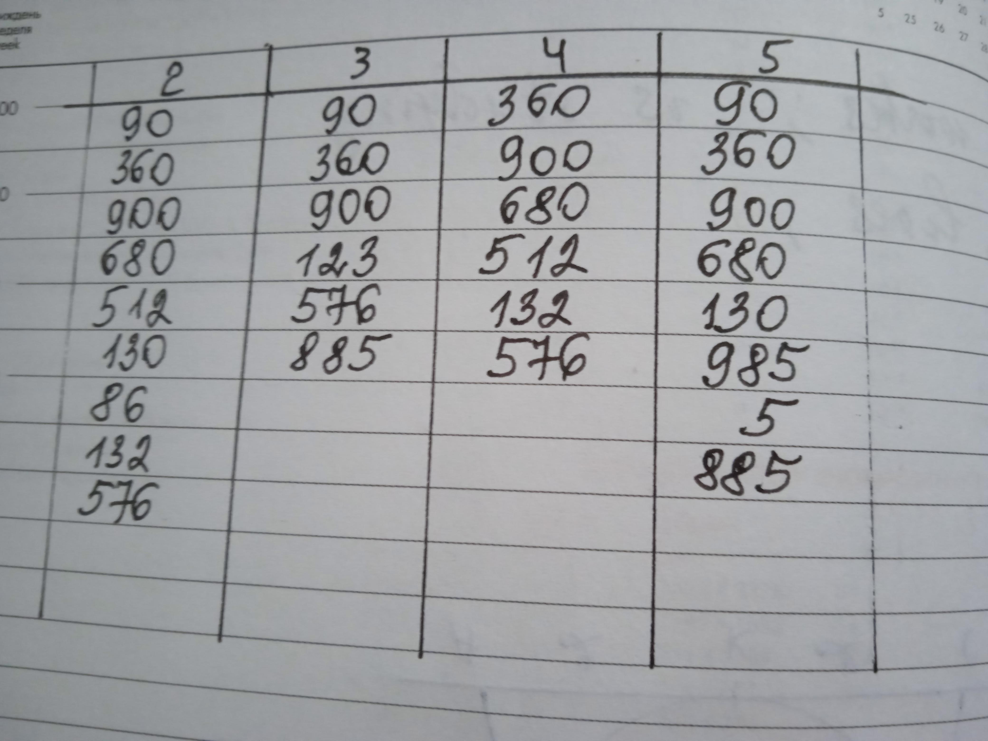 Распределяем числа по столбикам в зависимости от их делимости на 2, 3, 4, 5.