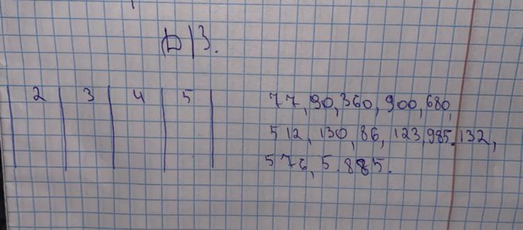 нам задали это задание,и я не поняла что тат нужно сделать.Только знаю,что нужно эти числа по столбикам раскидать,но не понимаю как.например:77 делится на какое то число из этих(не подошло)число 77 можно делить на 3 числа(подошло,но на следующие числа не подходит,там больше 5ти)помогите пожалуйстаДАЮ 50 БАЛОВ