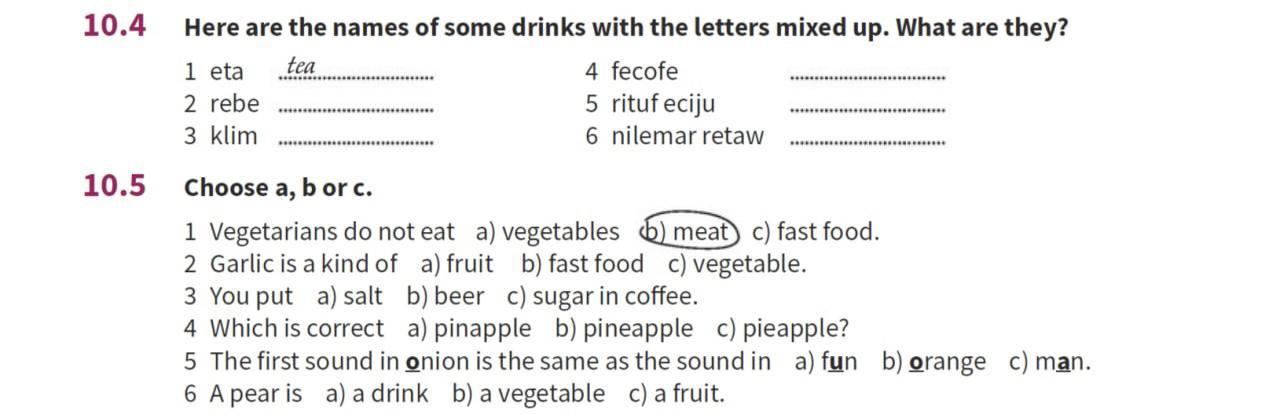 1.Here are the names of some drinks with the letters mixed up. What are they?
