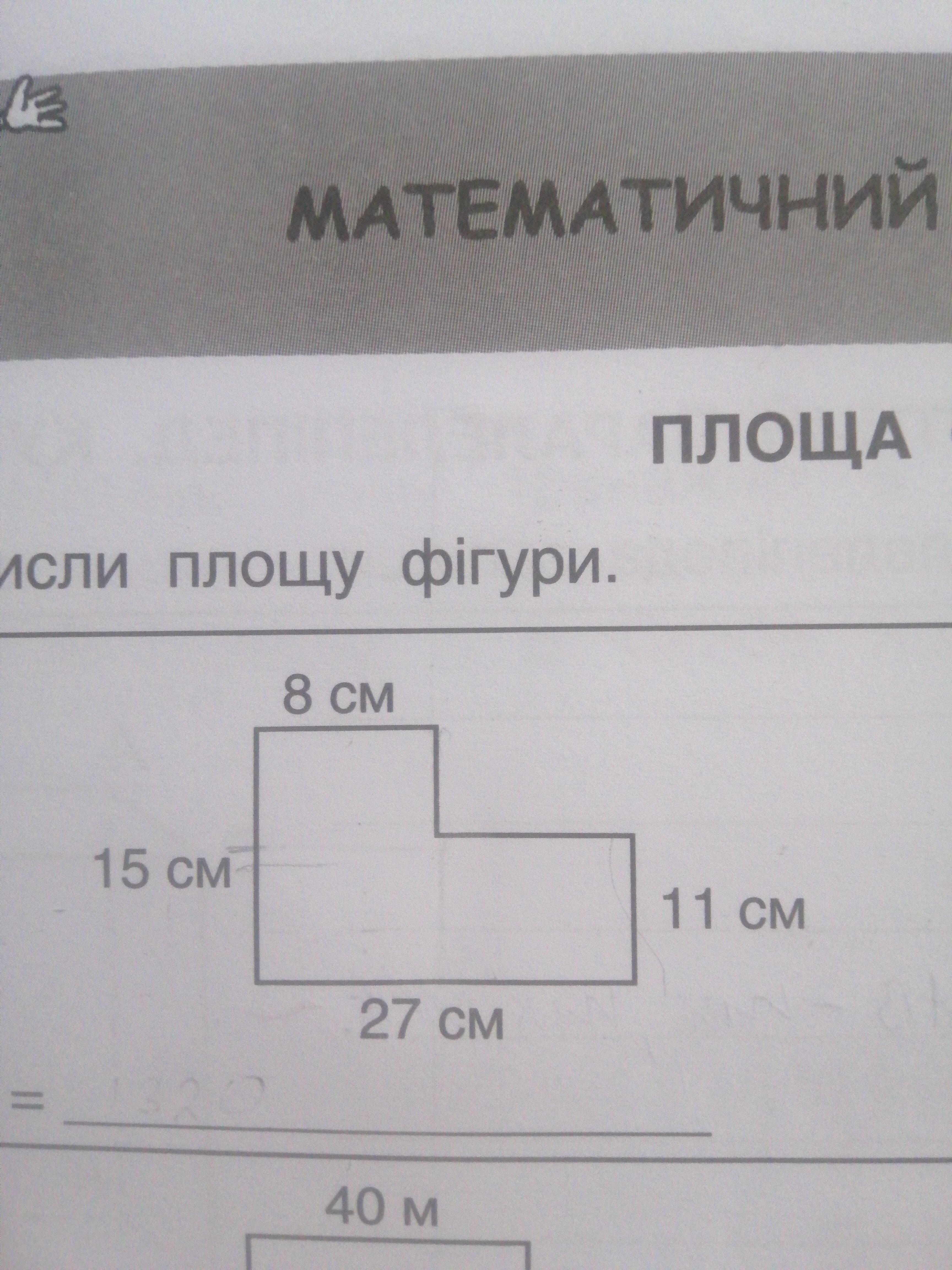 15 × 27 = 405 см^2 - площадь прямоугольника без учета выреза.