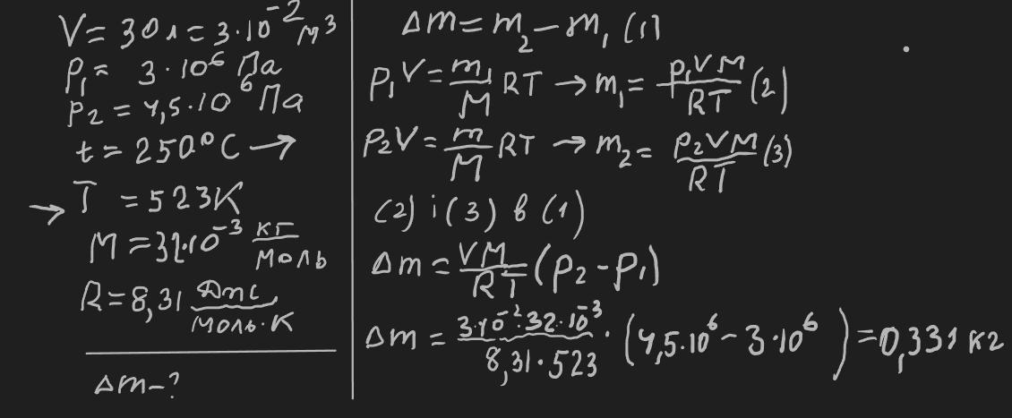 Скільки кисню потрібно закачати в балон об’ємом 30 л , щоб