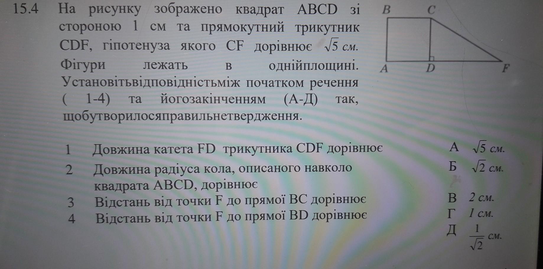 FD=√(СF²-CD²)=√((√5)²-1²)=√4=2см