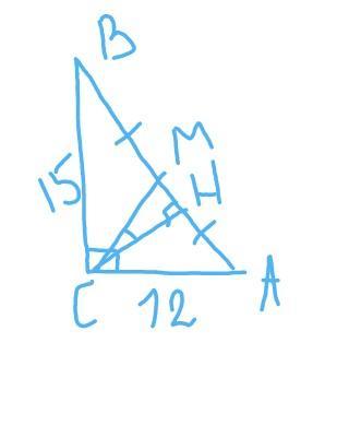 В прямоугольном треугольнике с катетами 12 и 15 из вершины прямого угла проведены медиана и высота.