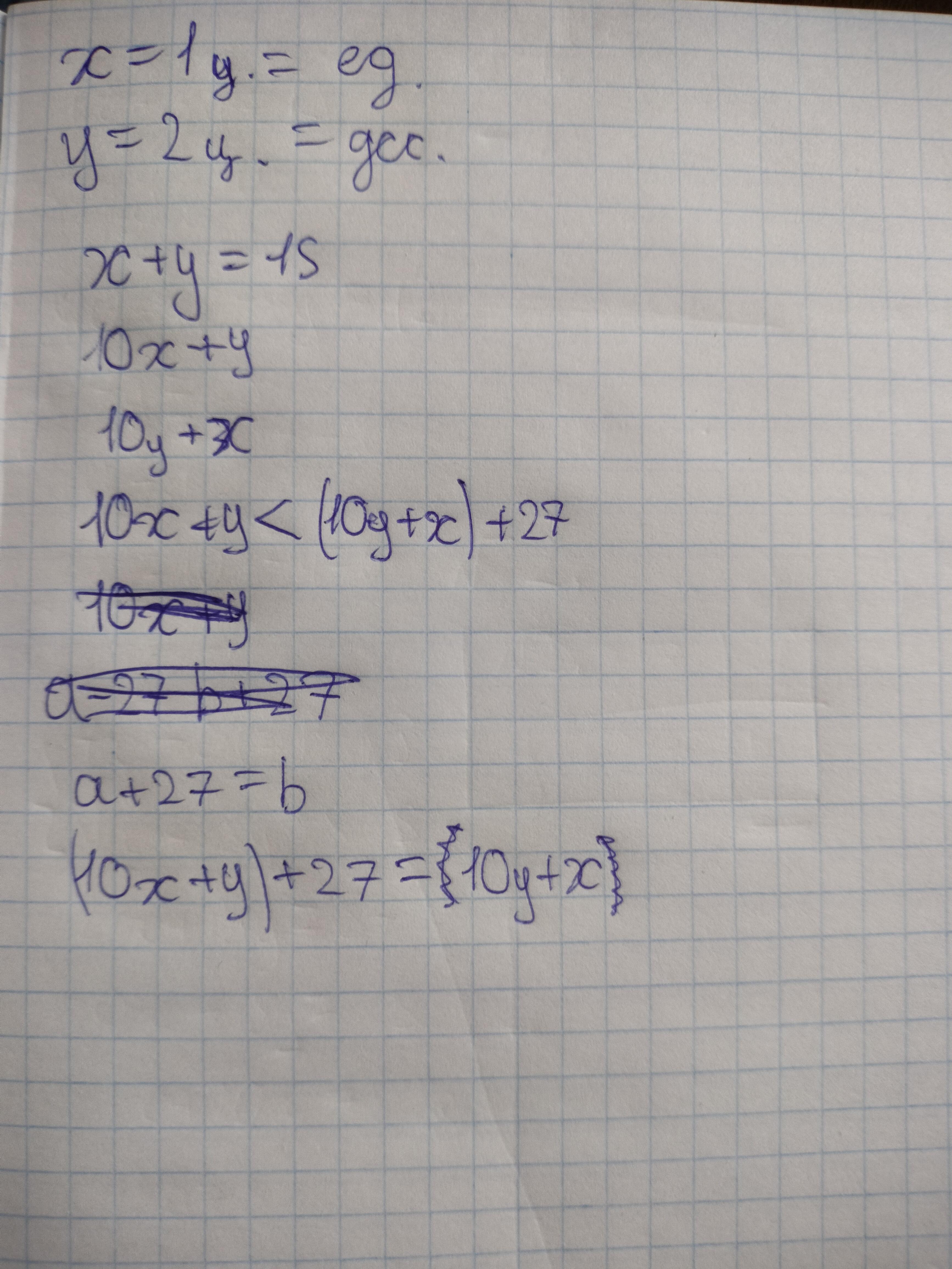 Разность полученного и первоначального чисел ,по условию, равна 27 или