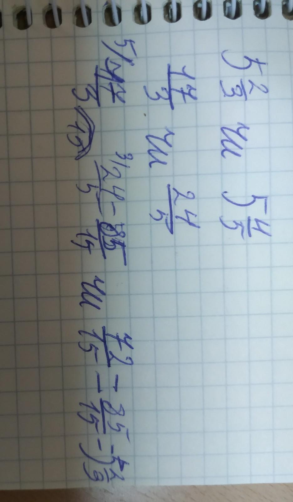 5. 2/3 и 5. 4/5 = 5. 10/15 и 5. 12/15