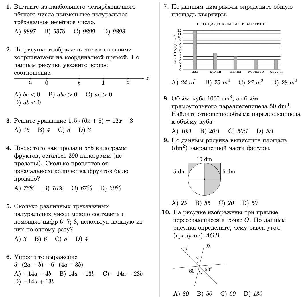6. 5(2a-b)-6(4a-3b)=10a-5b-24a+18b=-14a+13b (ответ D)