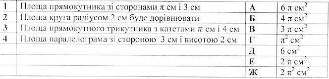 1. Площа прямокутника з сторонами π і 3 см