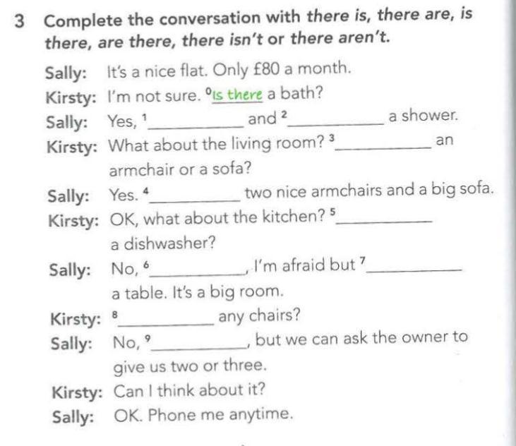 3 Complete the conversation with there is, there are, is there, are there, there isn't or there aren't.