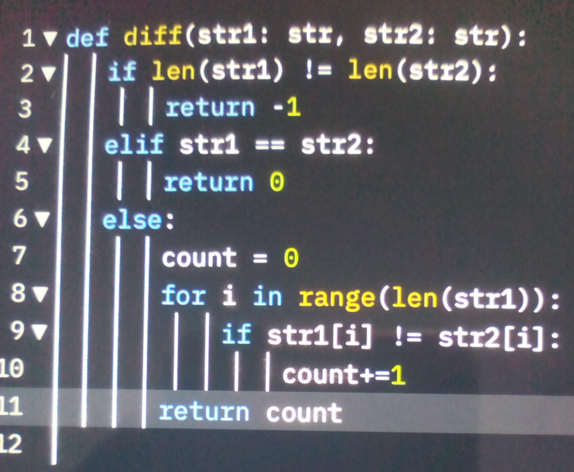 Ваша функция должна принимать 2 строки с точным количеством символов и возвращать целое число, представляющее разницу между ними.