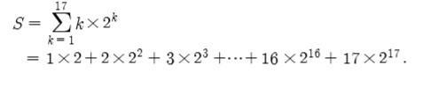 Σ (k = 1 → 17) k * 2^k = (17-1)*2^(17+1)+ 1 * 2 = 4194306