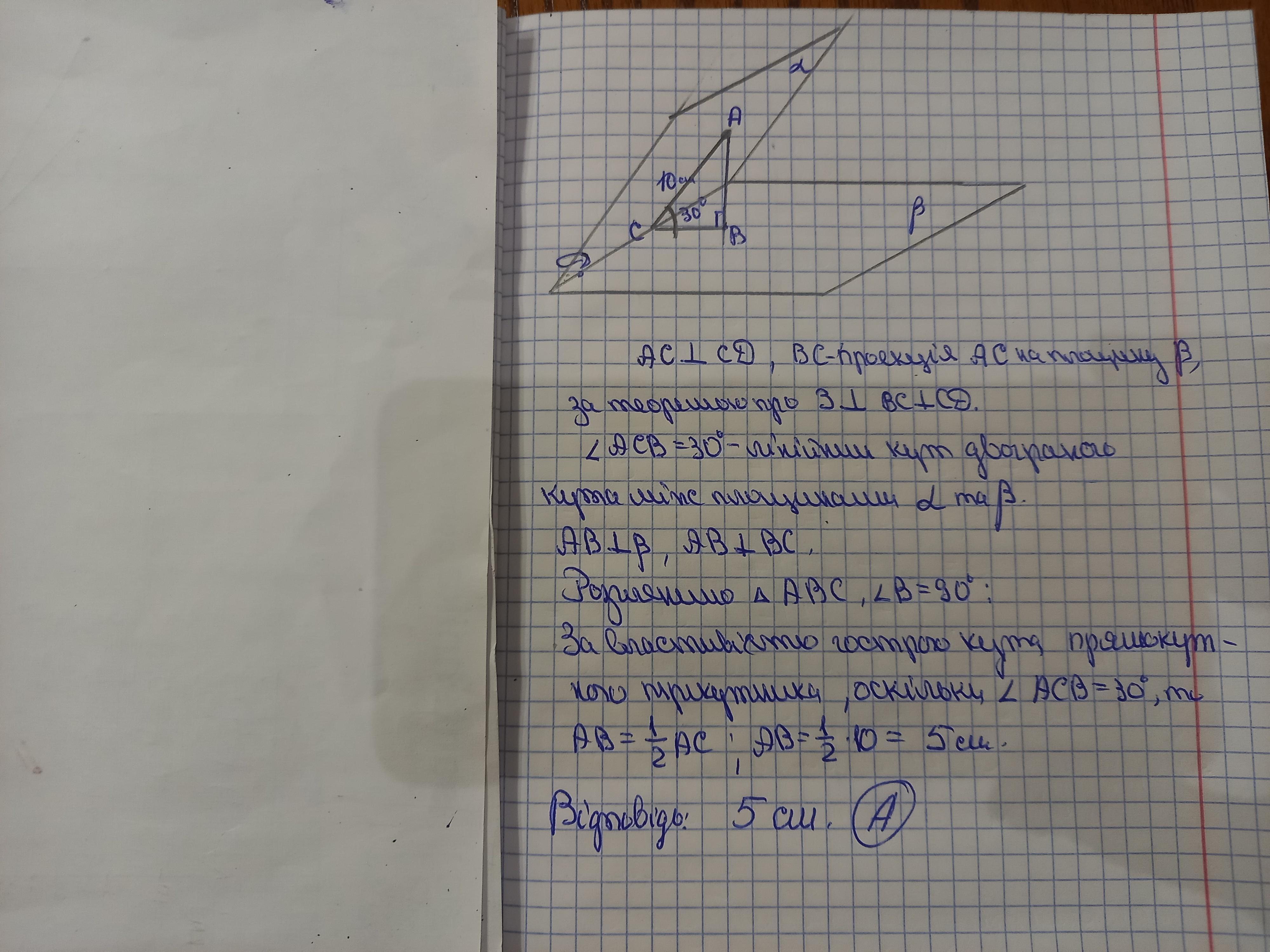 5 см. катет прямоугольного треугольника, лежащий напротив угла в 30° равен половине гипотенузы. гипотенуза равна 10.