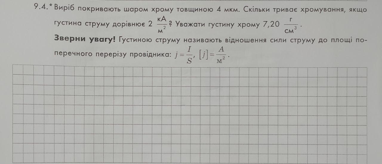 Изделие покрывают слоем хрома толщиной 4 мкм. Сколько длится хромирование, если плотность тока равна 2