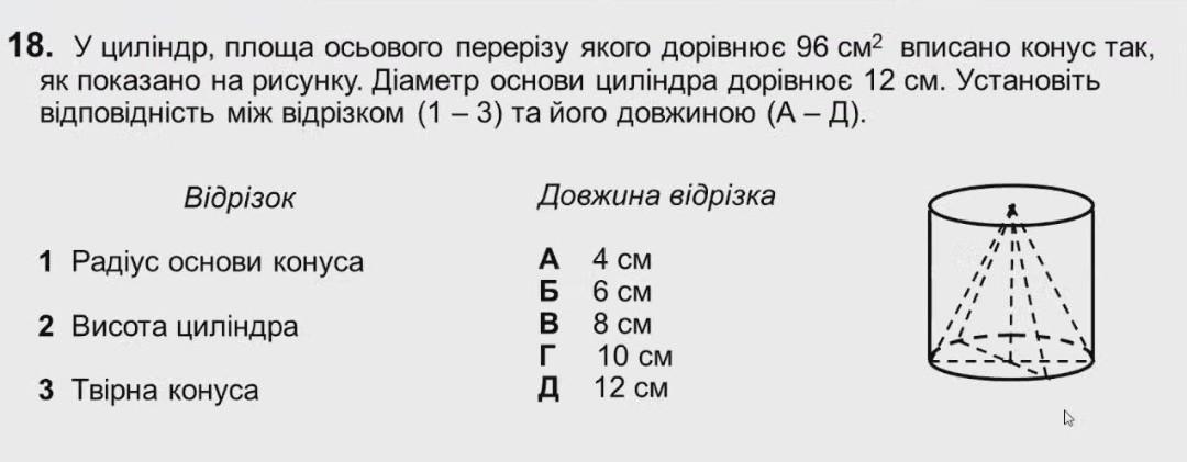 Н=Sо.п./D=96/12=8см висота циліндра, і конуса.