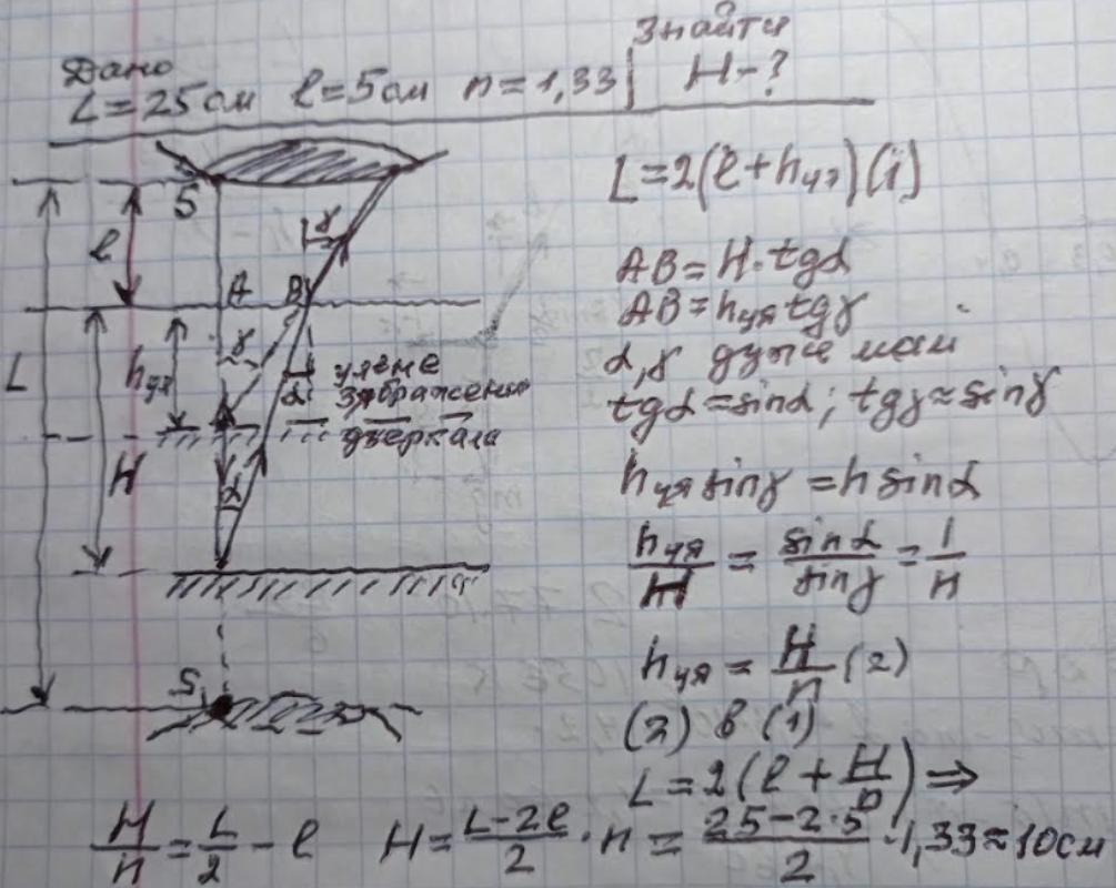 поверхні води 5 см. Визначте глибину посудини , якщо показник