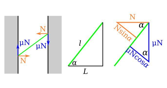 какой должна быть максимальная длина лома, чтобы он застрял между стенами, расстояние между которыми L? коэффициент трения дан(конкретно не дан,но дан буквой).