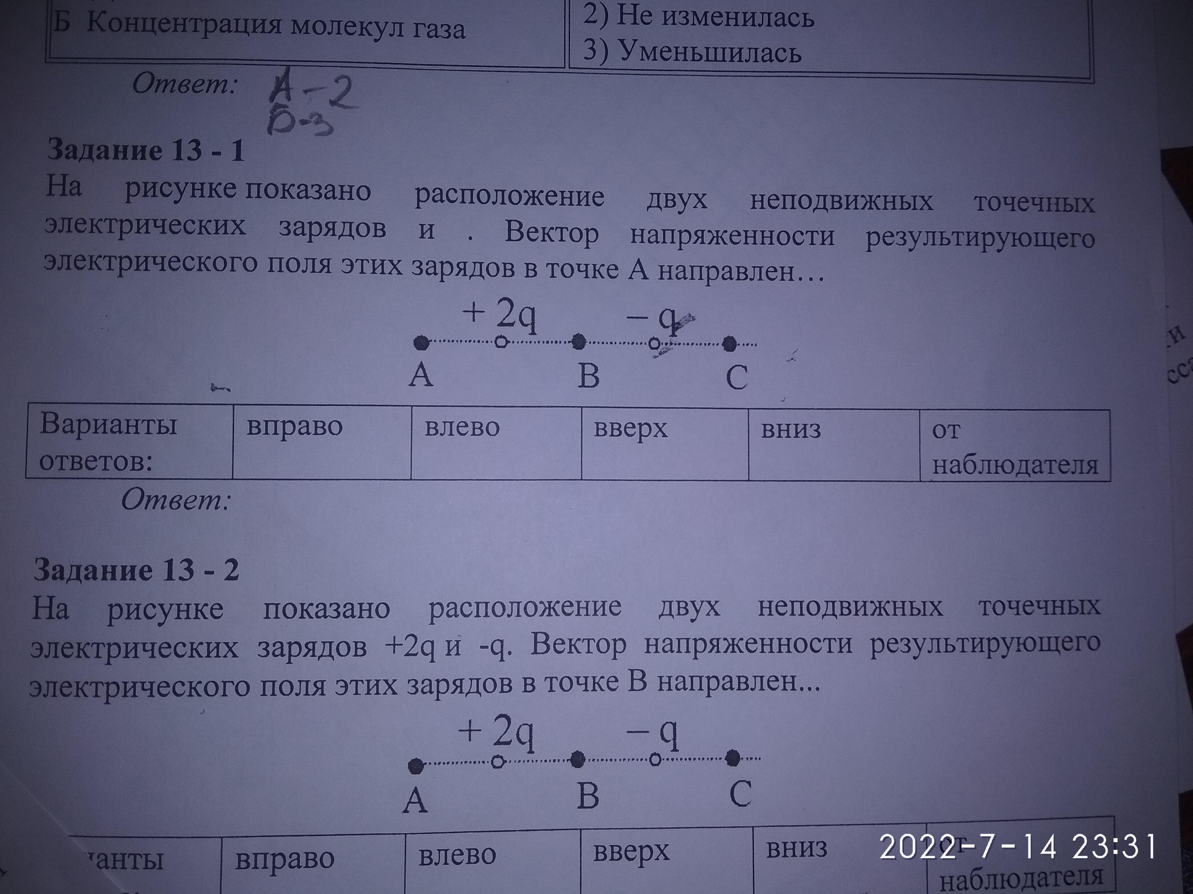 E2=k*q/(3R)²=kq/(9R²) направлен вправо, К отрицательному заряду. Из-за того, что расстояние в 3 раза больше, а заряд в 2 раза меньше Е2<E1.