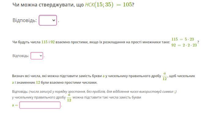 2) Якщо 115 = 5 * 23, а 92 = 2 * 2 * 23, то НСД (115 ; 92) = 23. Отже, 115 і 92 не є взаємно простими числами, тому що їх НСД не 1.