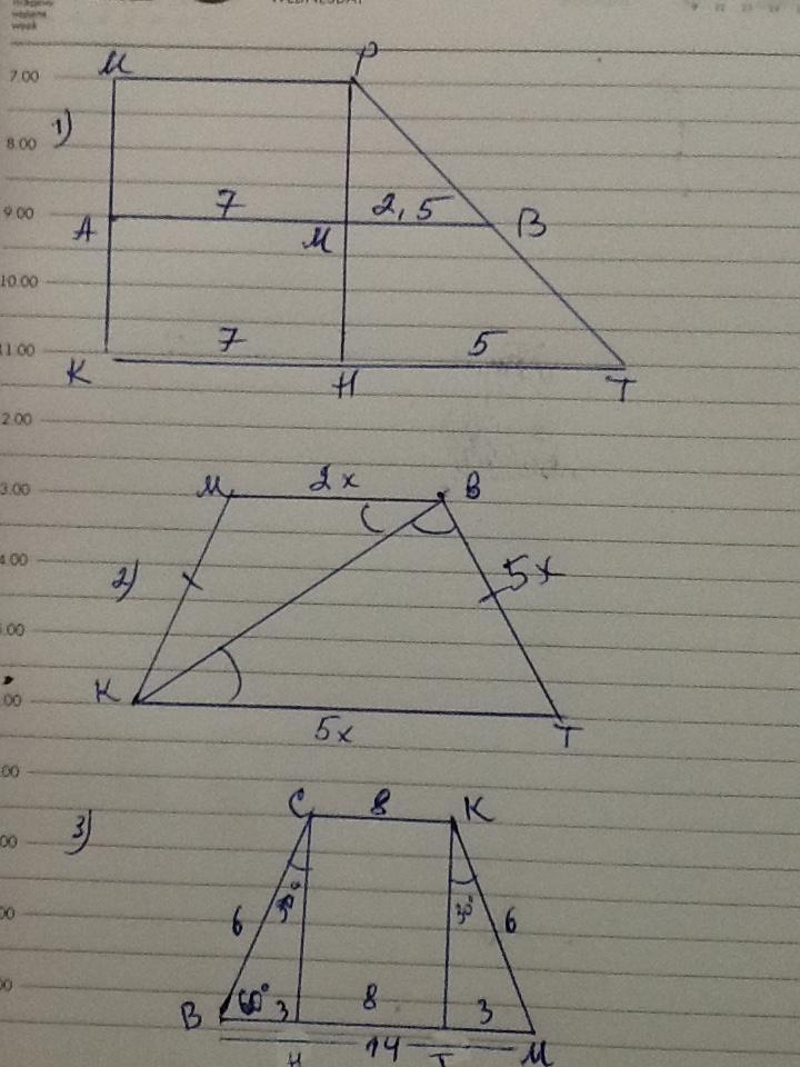 Дано: КМРТ - трапеція, КМ⊥КТ, АВ - середня лінія, РГ - висота, КН=7 см, ТН=5 см. АВ - ?
