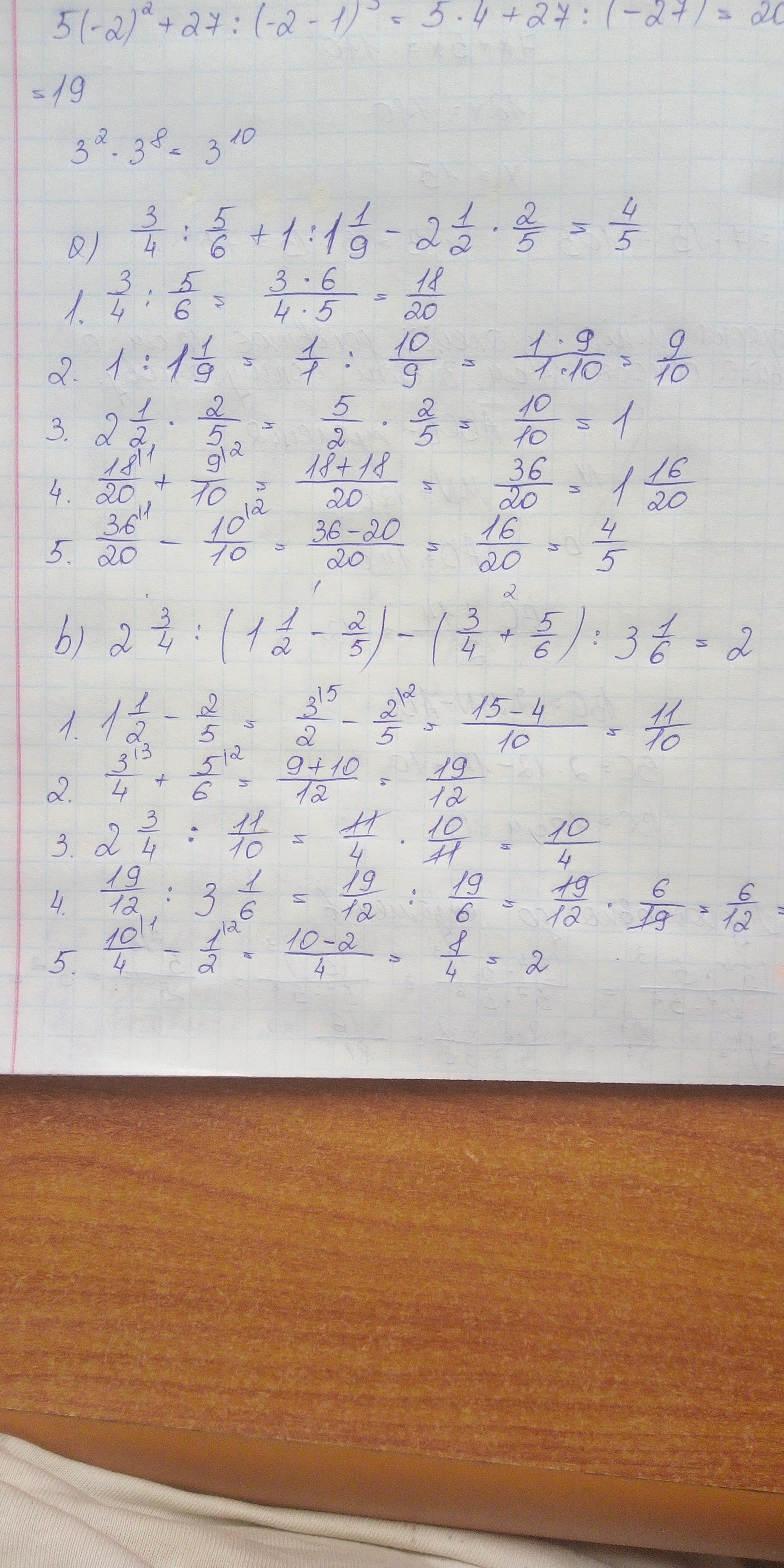 b) 1) 1 1/2-2/5=3/2-2/5=15/10-4/10=11/10;
