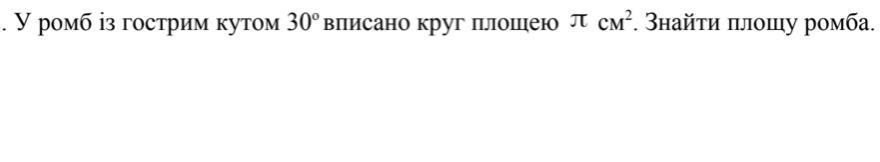З умови маємо ромб ABCD з гострим кутом 30°.