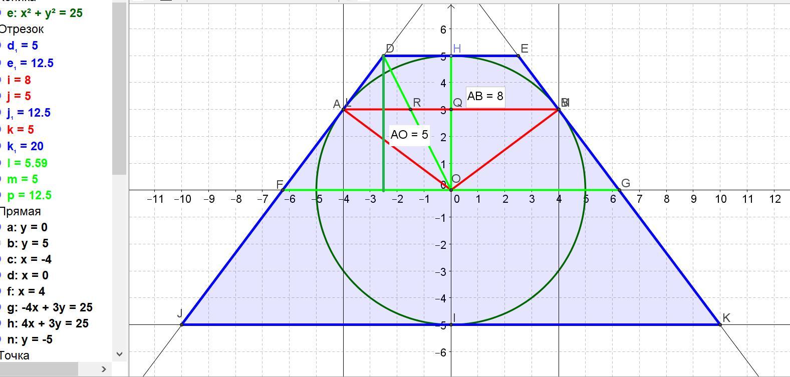 Тогда ОQ = √(5² - 4²) = √(25 – 16) = √9 = 3 см.
