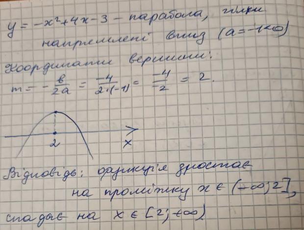 користуючись алгоритмом дослідження квадратичної функції вкажіть проміжки зростання та спадання графіку функції y=-x^2+4x-3