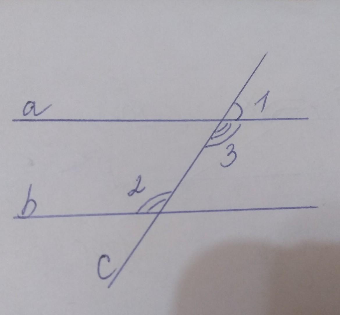 Угол 2 = угол 3 (как накрест лежащие углы при параллельных а и b и секущей с)