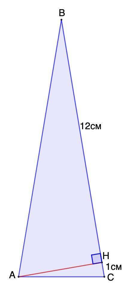 АВ = ВС = ВН + НС = 12 + 1 = 13 (см)