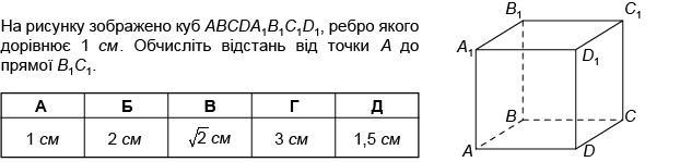 На рисунку зображений куб, ребро якого дорівнює 1 см. Обчисліть відстань від точки А до прямої В1С1.