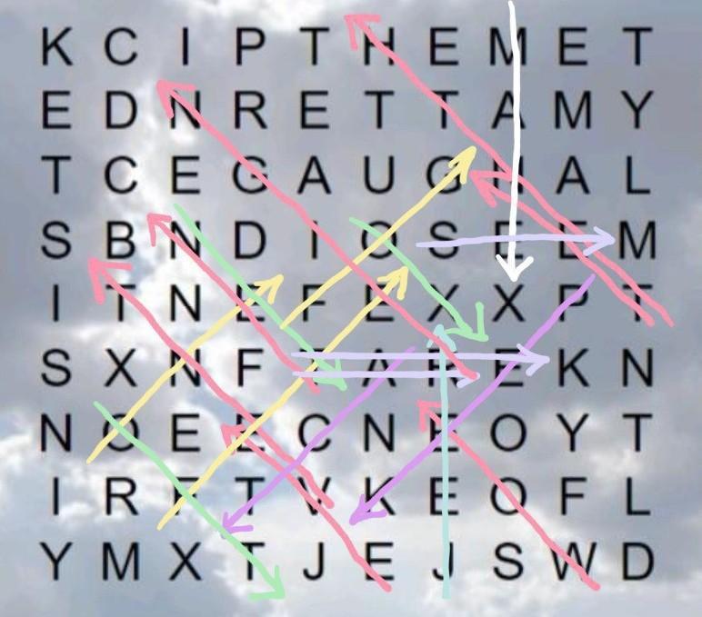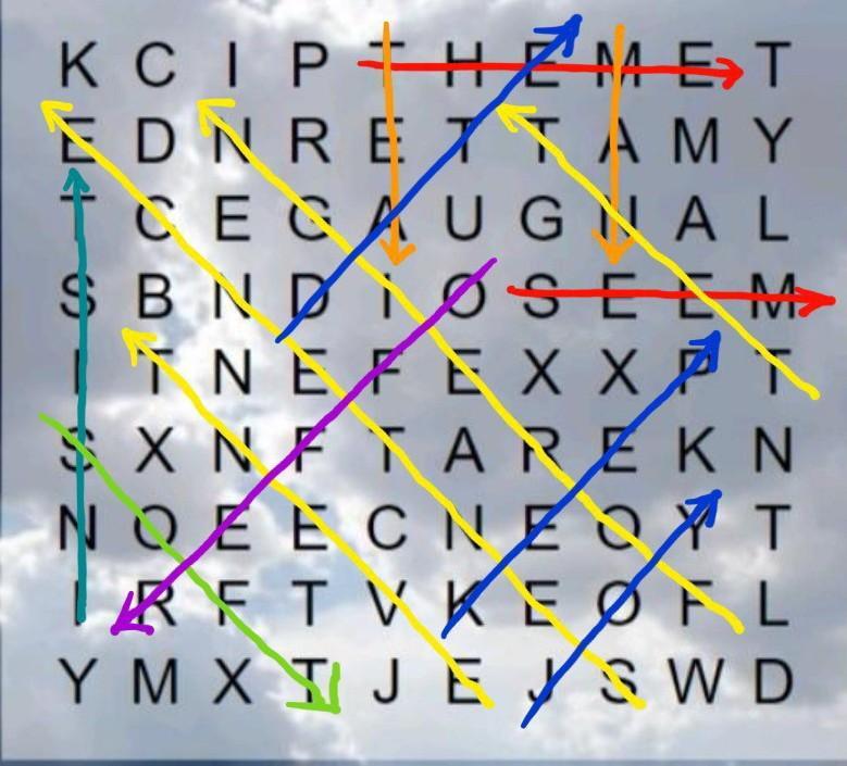 (Слова могут идти наискось, наискось назад, вправо, вниз "Не могут идти назад" (Не могут быть написаны наоборот)